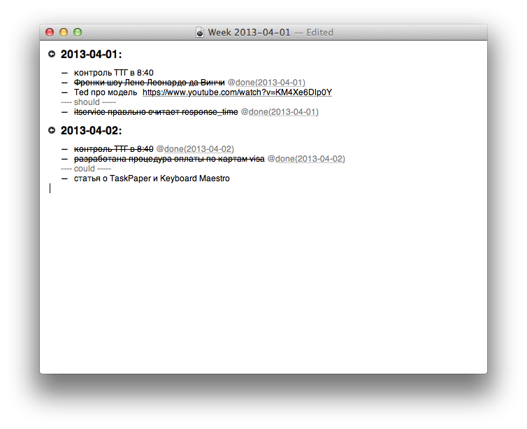 Update: Читайте продолжение темы «Улучшение Taskpaper при помощи Keyboard Maestro»